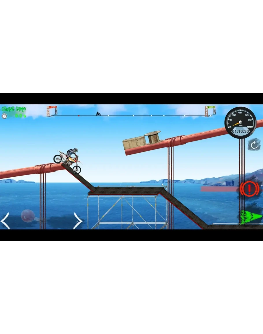 Enduro bikes are heavy, and controlling tilt is sometimes hard. They don't brake much either, so you need to plan your speed carefully. The game includes speed signs to give you tips about when you can drive fast, or when you should drive slowly.