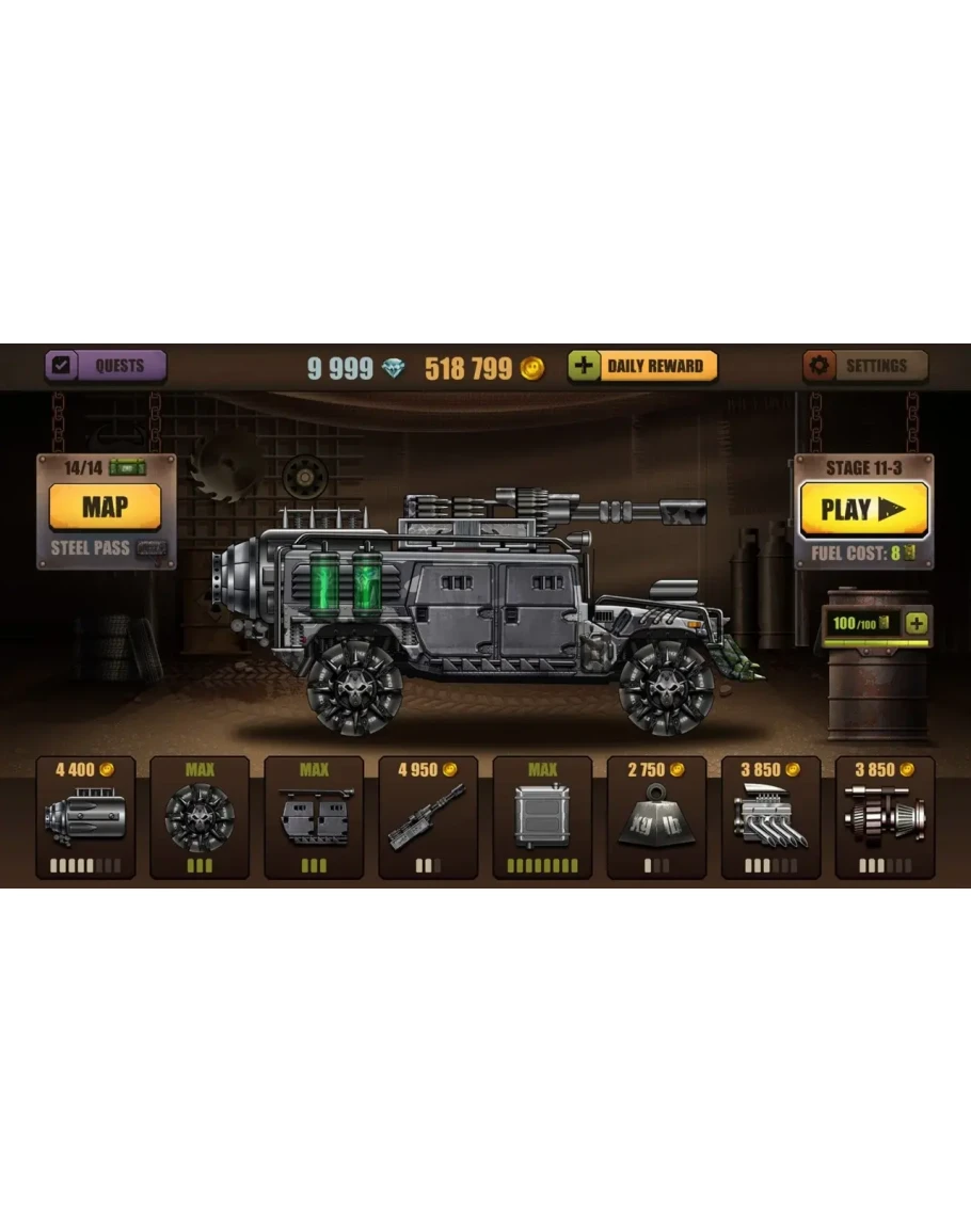 Давите на газ, езжайте быстро и яростно! Прорывайтесь через мусор и орды зомби. Зарабатывайте деньги, модернизируйте свои машины, делайте еще больше беспорядка и доберитесь как можно дальше!