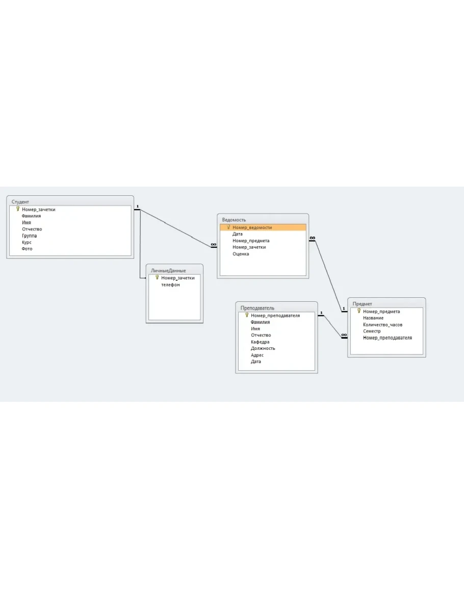 База данных "Деканат". Таблицы, запросы, формы, отчеты. схема данных.