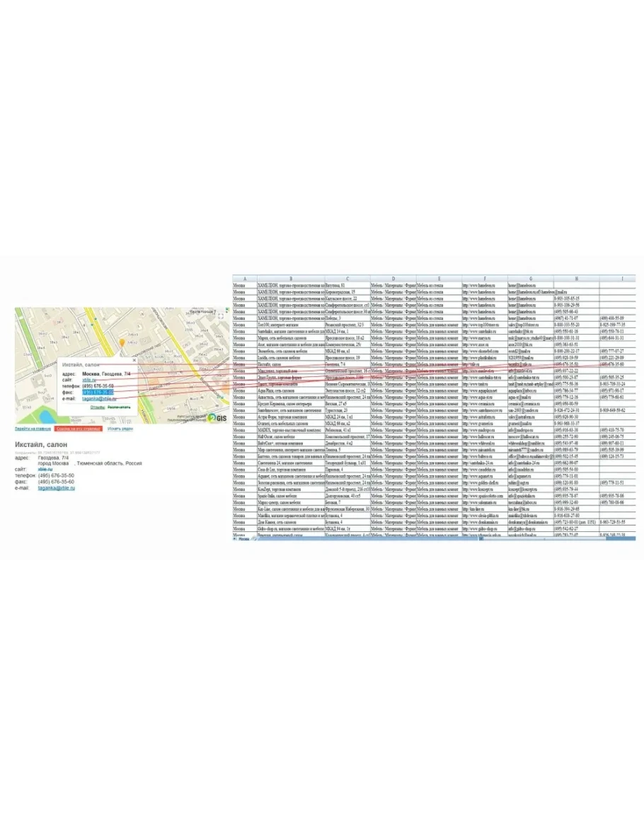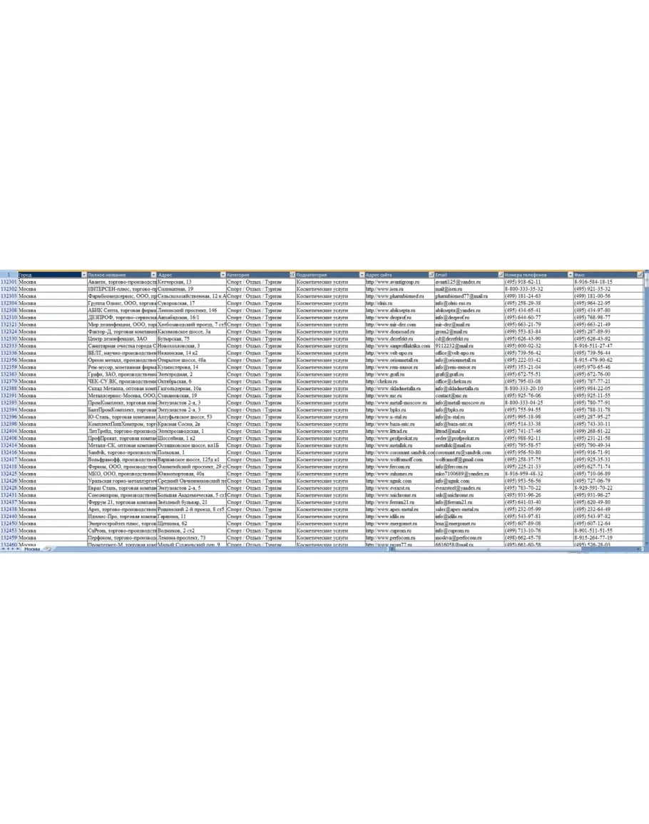Информация представлена в удобном формате excel (.csv и .xlsx), базы организаций очень удобны для менеджеров. Вы можете гибко управлять данными, делать выборки для рассылки, ставить метки, изменять информацию при необходимости, импортировать информацию в другие программы.