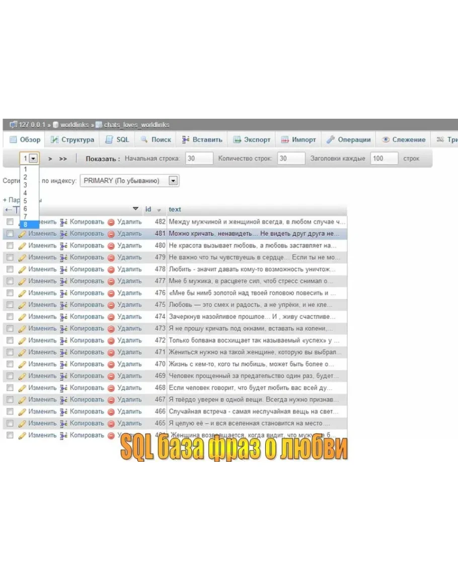 База фраз о любви - 216 всего всего формате SQL для phpMyAdmin.