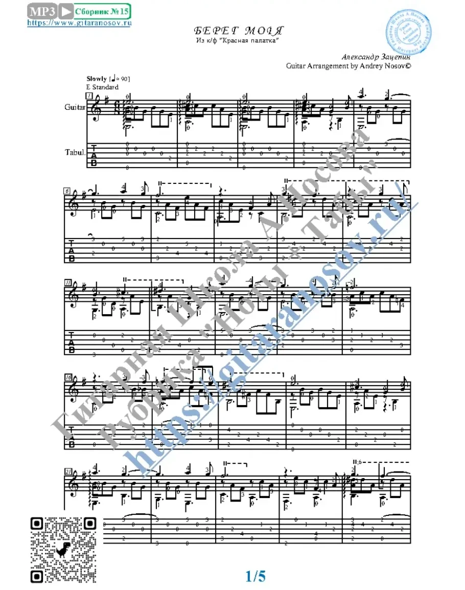 Товар включает в себя ноты с табулатурой и без табулатуры (в одном PDF). Прилагается ссылка на прослушивание / скачивание mp3.