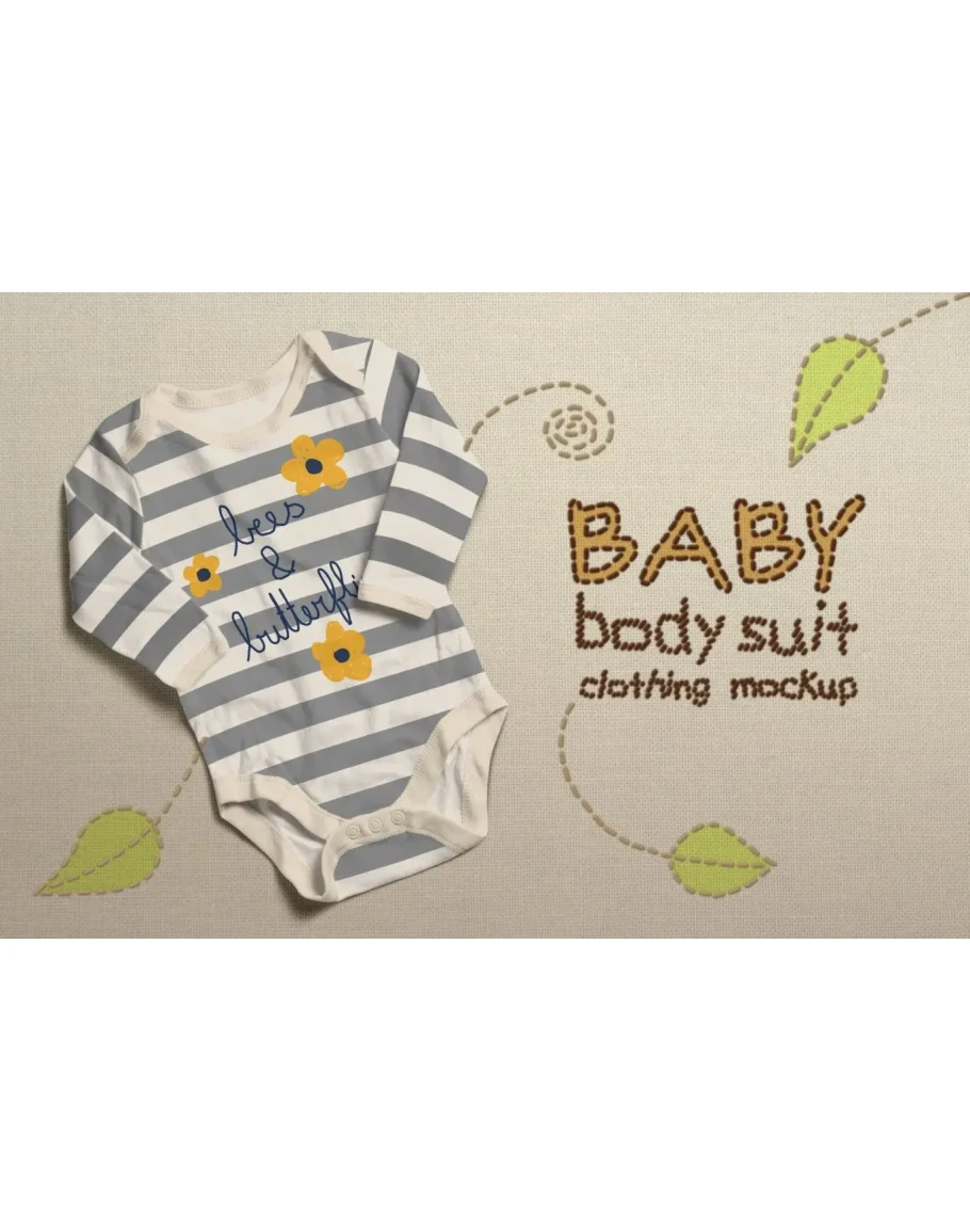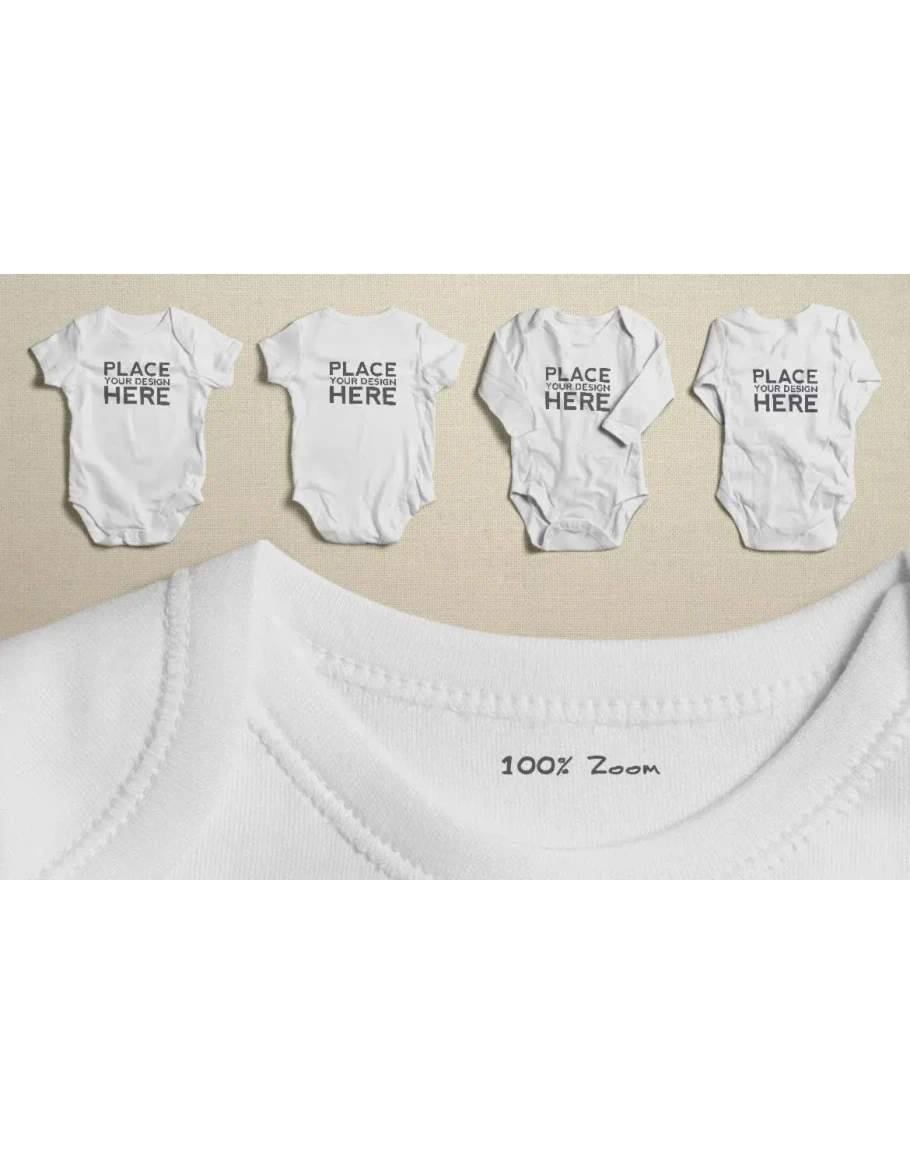 4 high resolution photo-realistic baby bodysuit mockups. Whether you own a tshirt printing company or you are a tshirt seller or a tshirt designer, this is a great solution for you. Save time and use this photo-realistic mockup instead of taking pictures. It’s very easy to use.