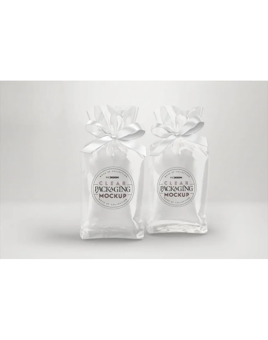 • Clear Candy Bags with Ribbons Packaging Mockup