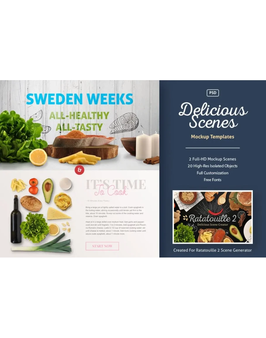 Download a set of 2 fully customisable mockup scenes of the highest quality: