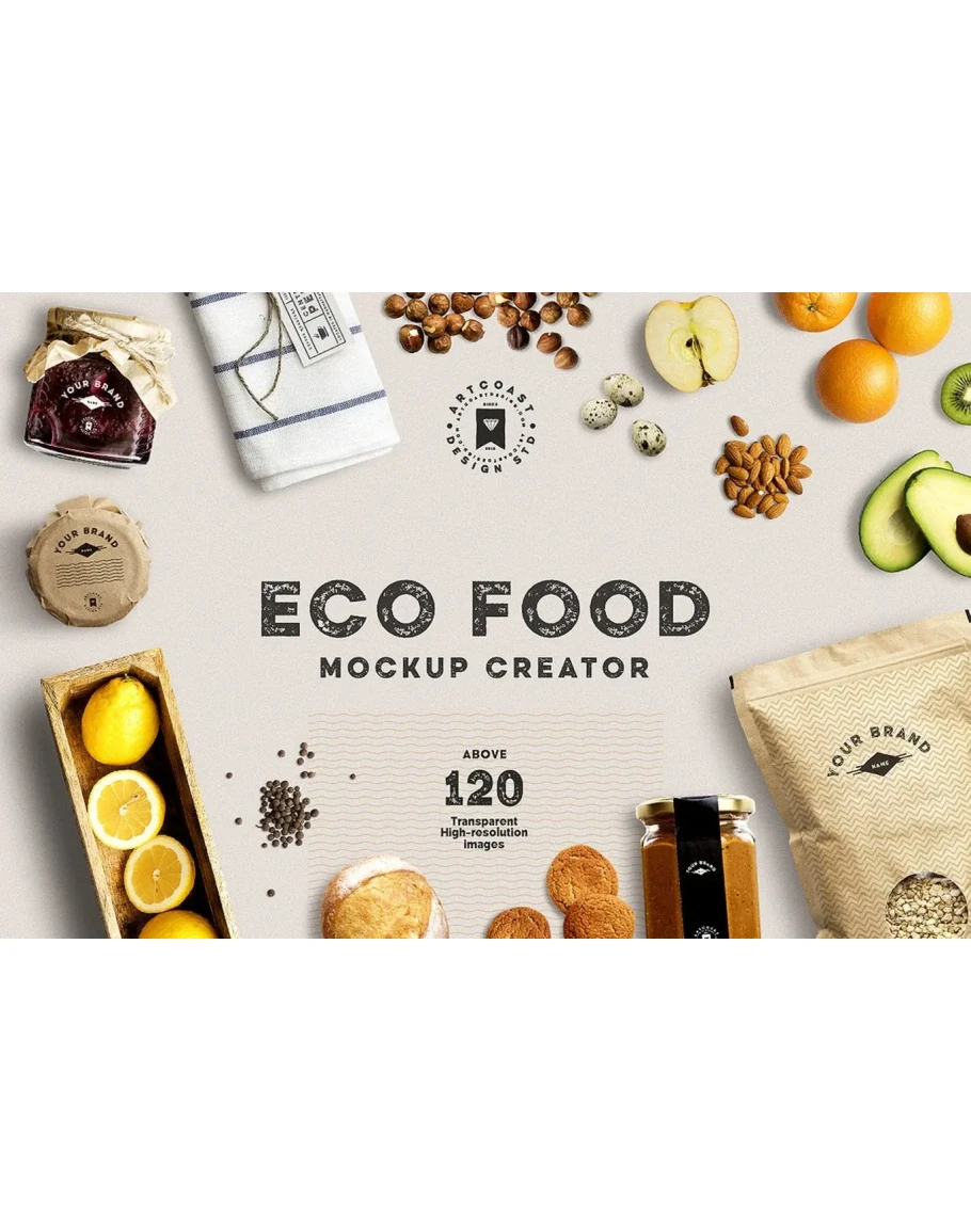 Eco Food Mockup Creator that help you to create beautiful hero images for website headers and print.