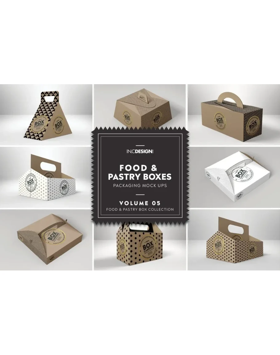 VOLUME 5: FOOD & PASTRY BOXES Box Carriers Take Out Packaging Mockups