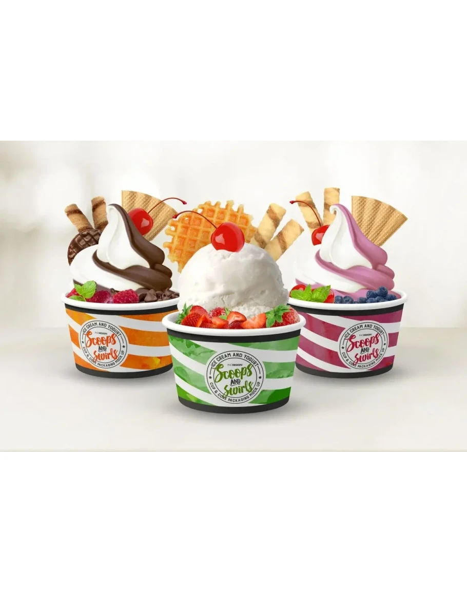 Two (2) PSD mock-ups with lots of possibilities – The perfect Cup or Cone Packaging Mock up for Ice Cream or Frozen Yogurt Projects (See Preview samples; samples are from an actual project; designs are not included)