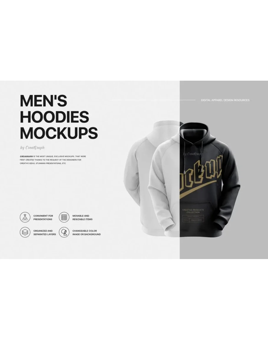Showcase your work with this high-quality mockups of Hoodies. These PSD files are using the Smart-Object, so you can replace the mock-up content easily and quickly.
