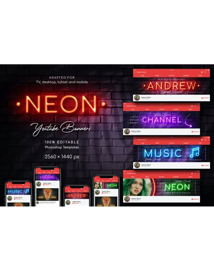 NEON YouTube Channel Art Be cool, be creative, be trendy with this YouTube templates!