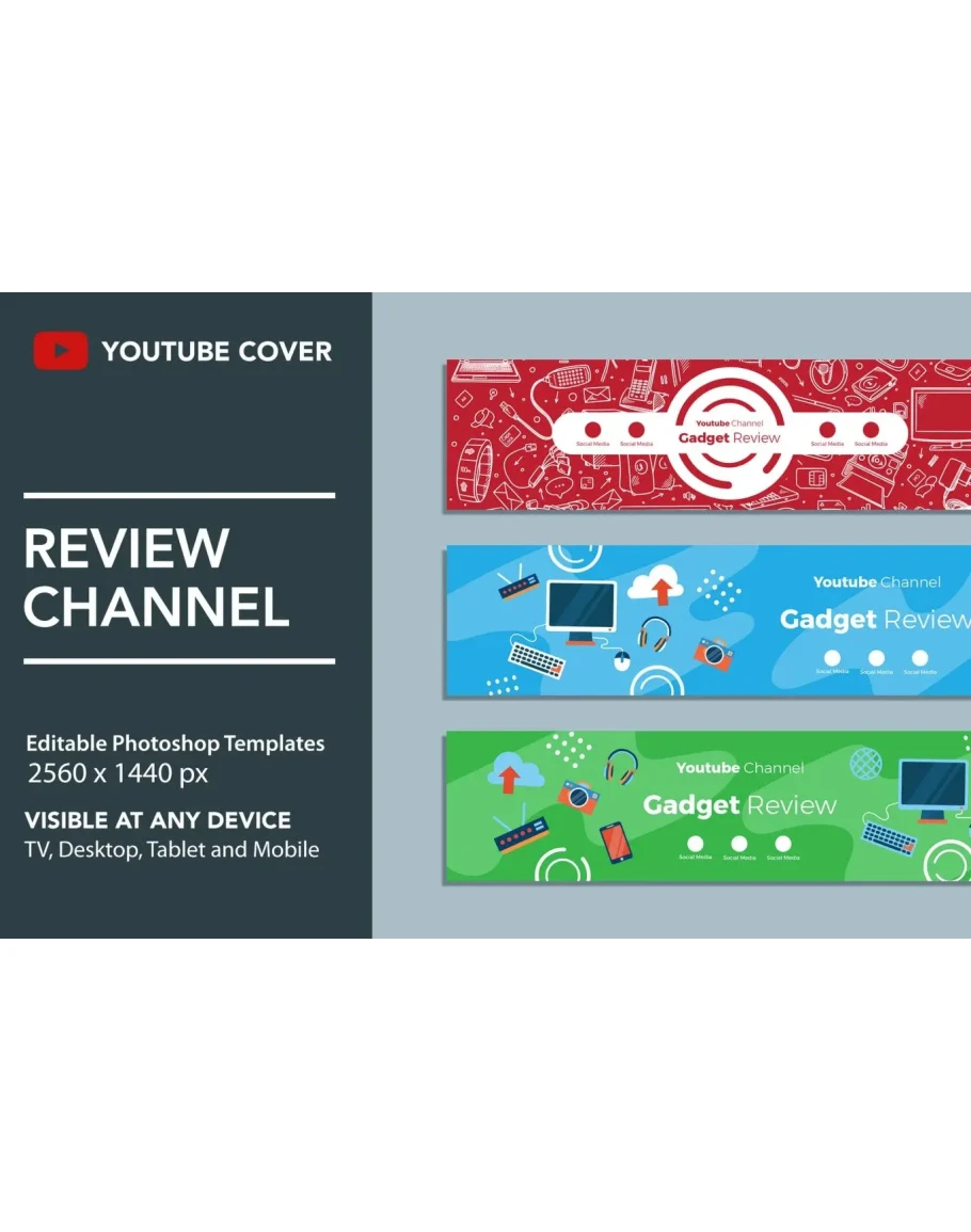 Review Gadget Youtube Cover for personal and business use. Beautiful and organized. All main elements are easily editable and customizable. Make your channel stand out online and grow your channel’s with this great looking YouTube channel.