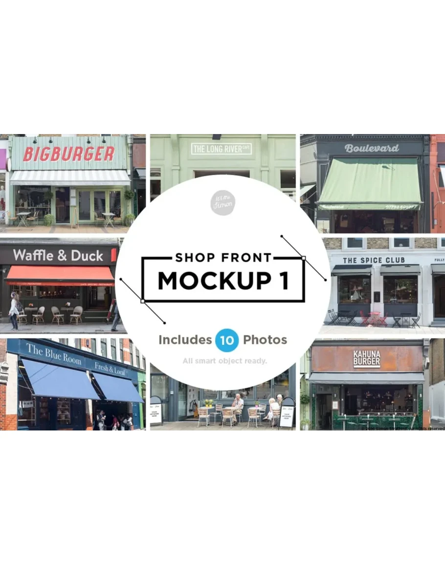 Shop facade mockups 1 A set of 10 high-resolution photos of real restaurants and cafés. All the images are taken in and around London with my Nikon D610.