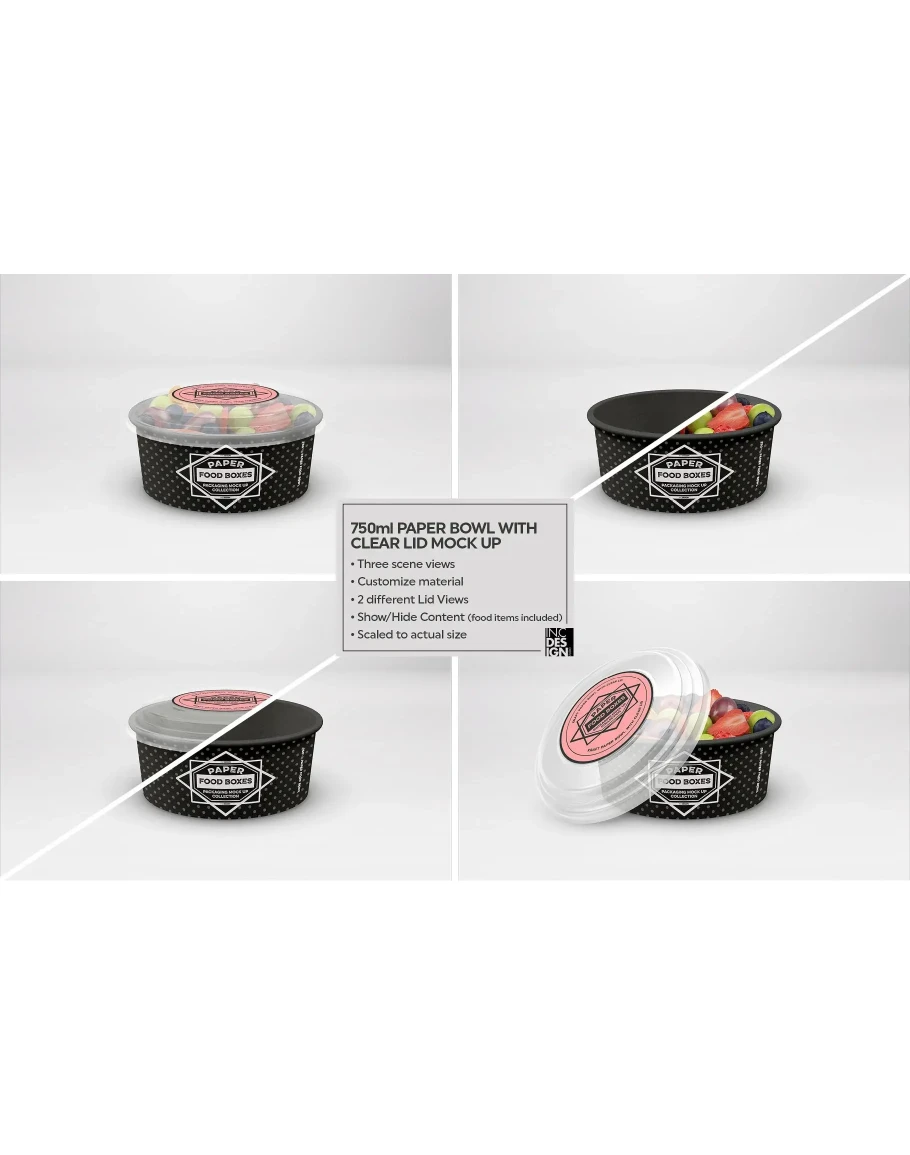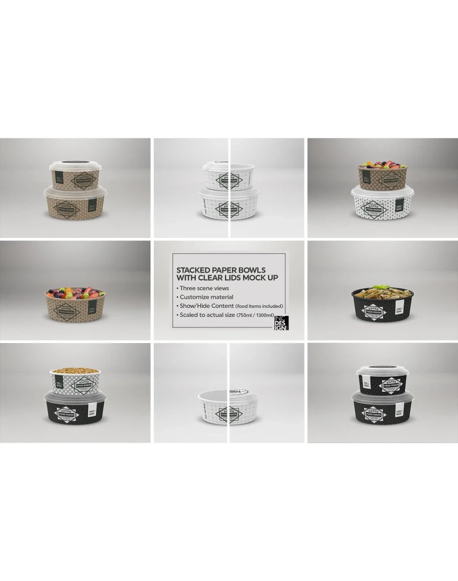 8 High Resolution psd Mock ups with 17 Mock Up scene options of Paper Food Box packaging in various shapes and sizes -- perfect for presentations or showcasing your design work.