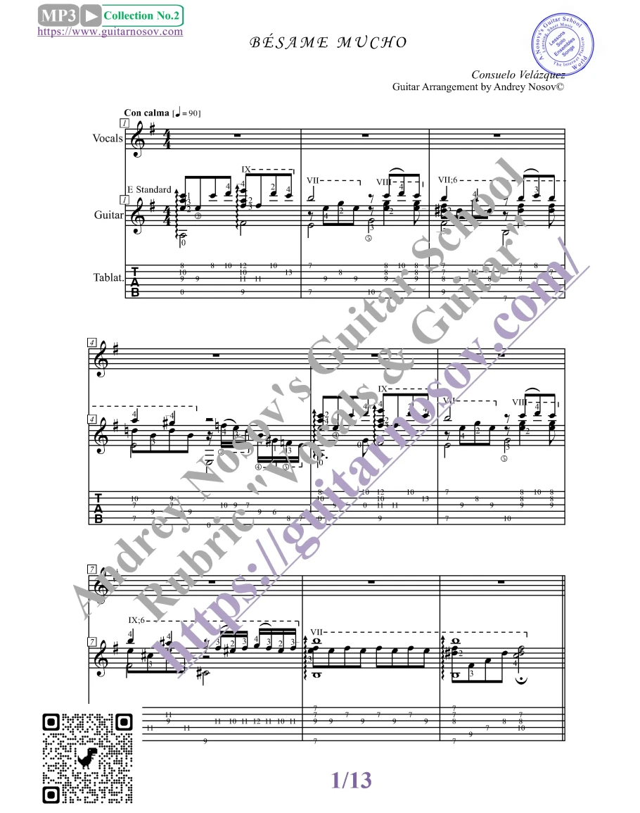 • Besame Mucho (Вокал Гитара Ноты Табы)