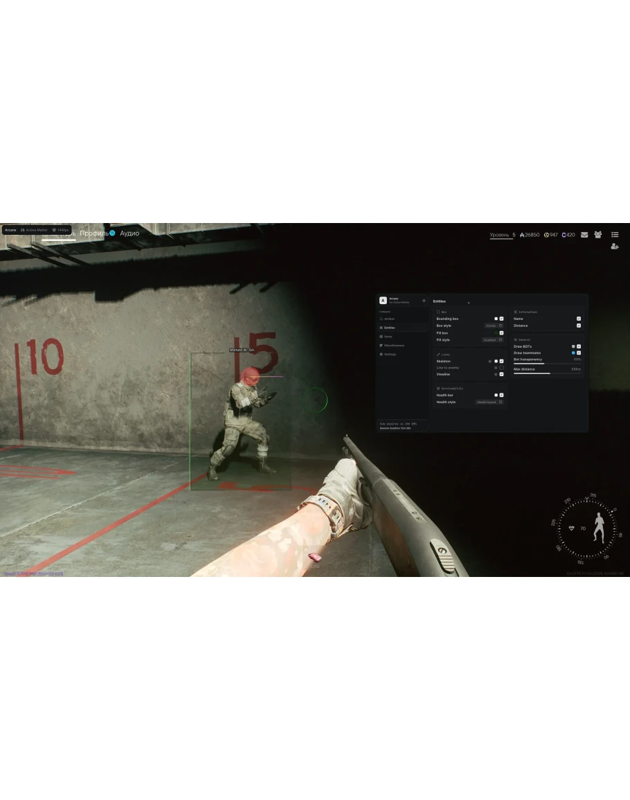 Модуль ESP отображает противников, союзников, предметы и транспорт. Визуальные элементы (боксы, скелет, здоровье, дистанция) настраиваются по цвету, стилю и прозрачности. Поддерживается выделение аирдропов, оружия и ящиков с лутом — вы всегда знаете, где нужные ресурсы.