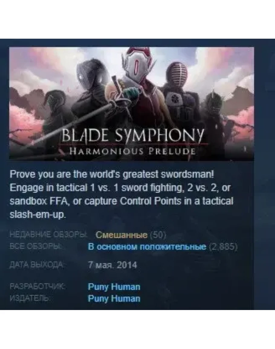 Prove you are the world's greatest swordsman in Blade Symphony: a slash-em-up featuring a highly detailed and in-depth sword fighting system. Face down other players in tactical swordplay, 2 versus 2 team duels, or participate in sandbox FFA game modes.