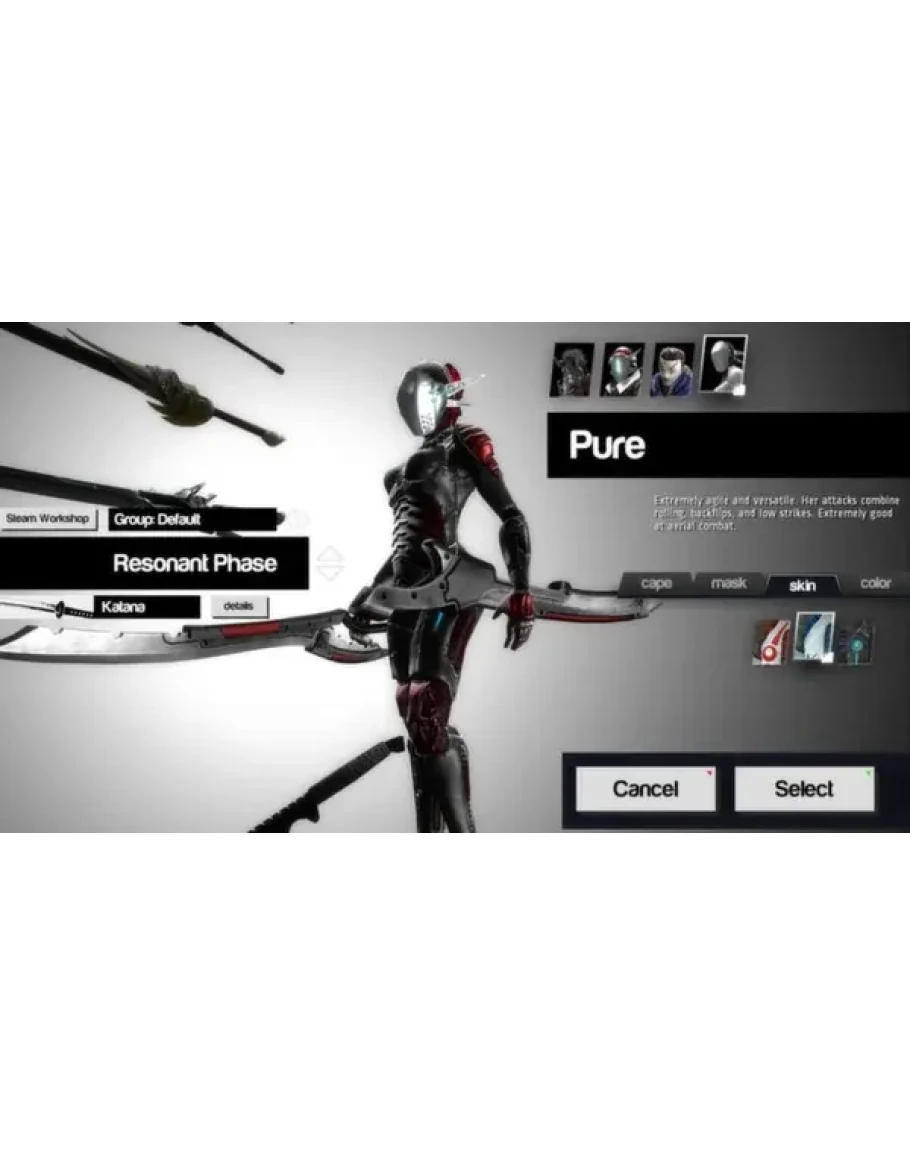В игре присутствует множество клинков различных типов и несколько видов персонажей с их костомизацией.