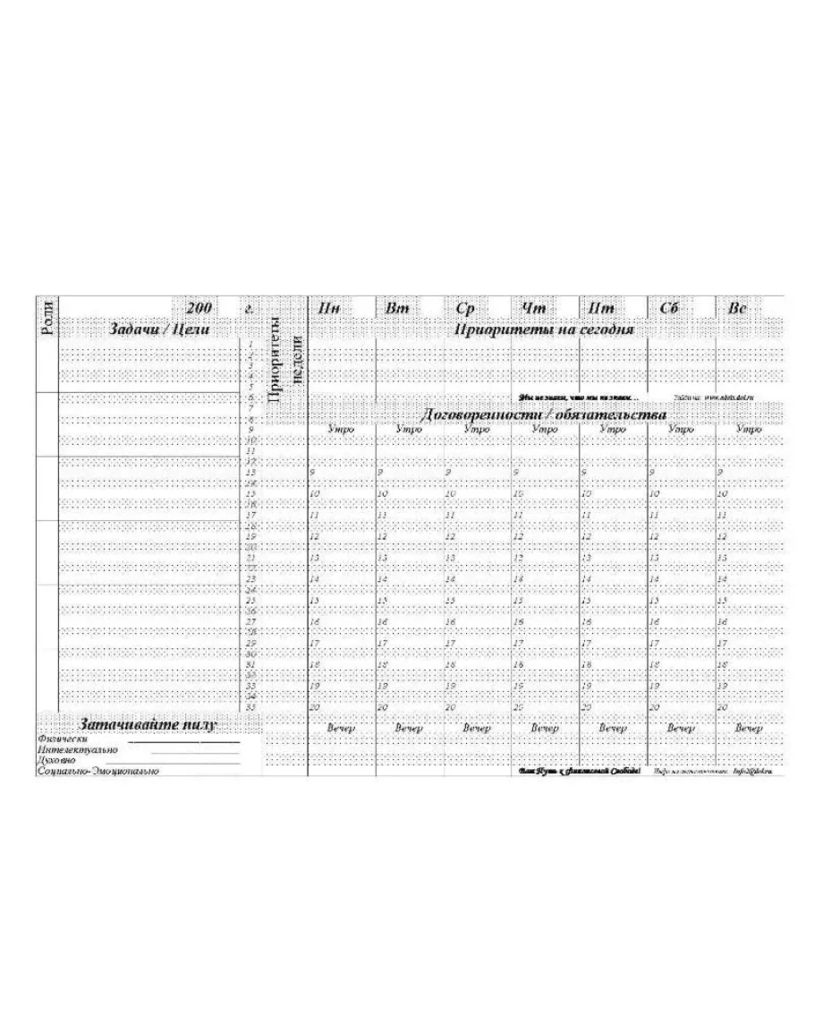 Бланк понедельного планирования для органайзера А5 по системе Стивена Р. Кови