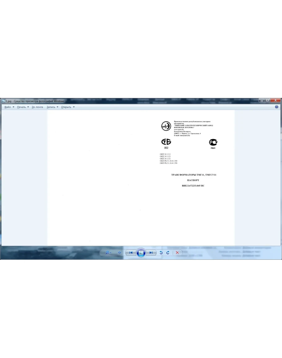 Бланк паспорта на Минские трансформаторы им. Козлова
