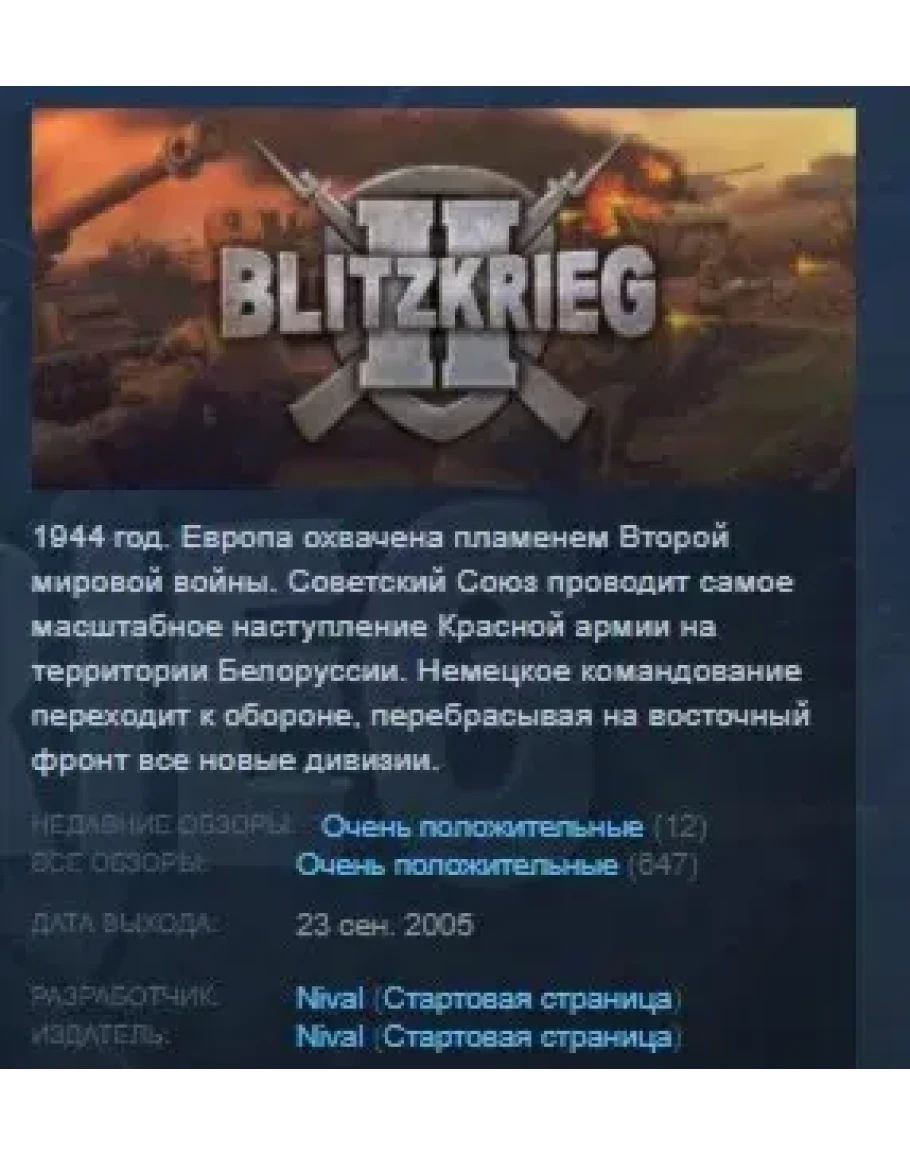 Blitzkrieg 2 Anthology STEAM KEY РФ+СНГ СТИМ ЛИЦЕНЗИЯ
