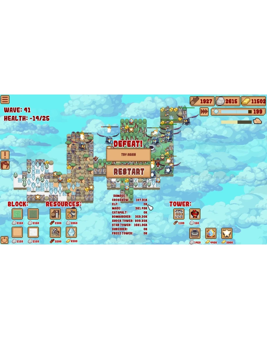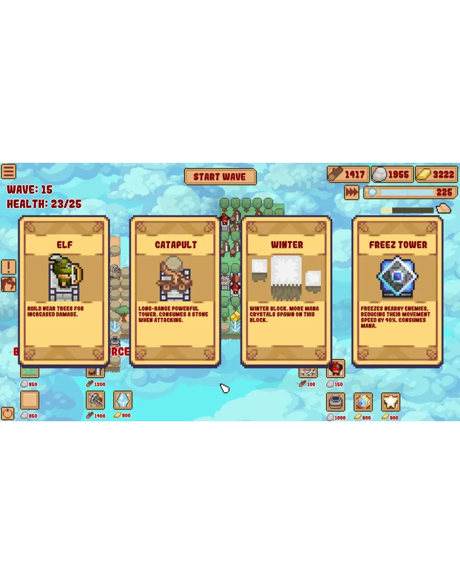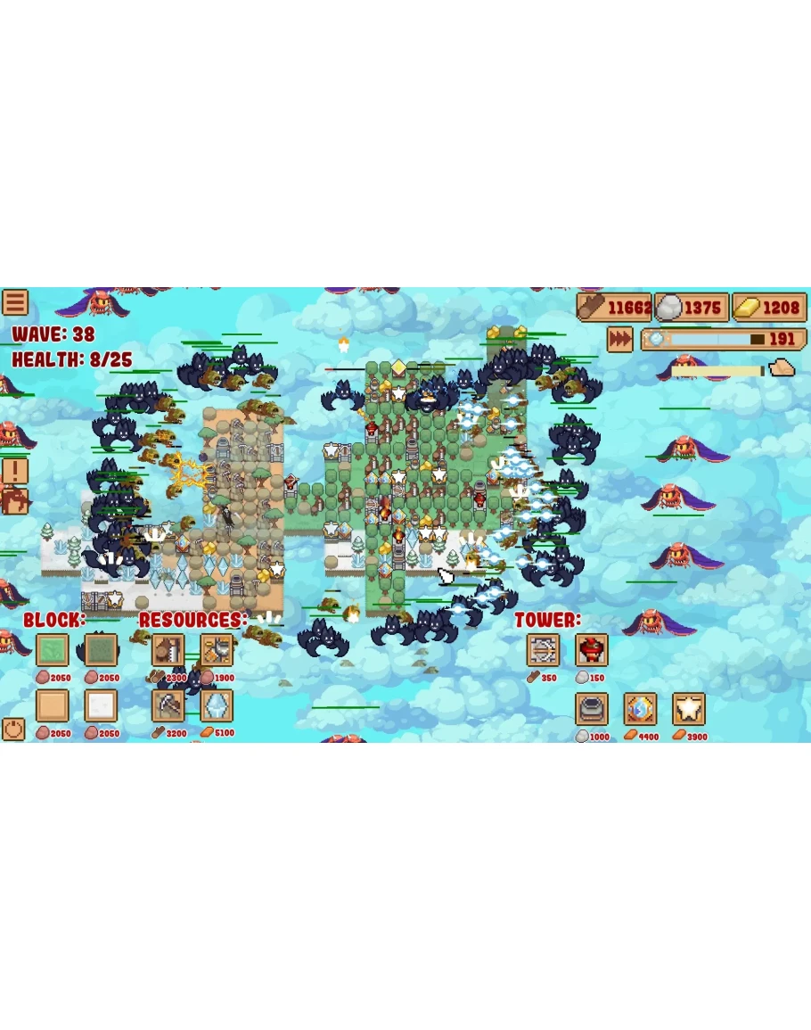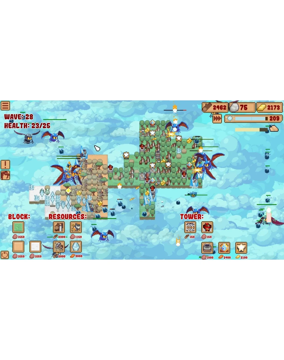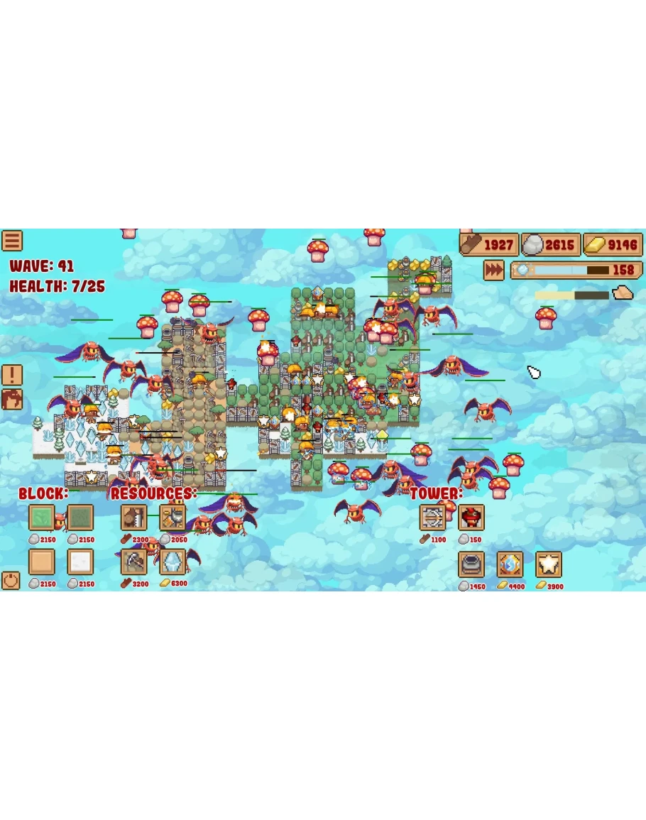 Порядок выбора улучшений в каждой игре очень важен. Вы можете выбрать улучшения, основанные на ресурсах, улучшения волшебной башни или улучшения для сильной ранней защиты, которые позволят вам безопасно перейти к поздней игре. В сочетании со случайно генерируемыми блоками это дает бесконечную ценность воспроизведения.