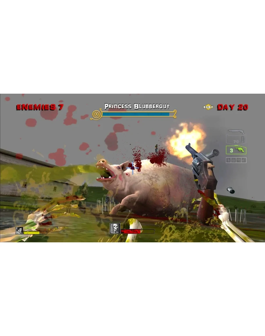 Blood And Bacon это мультиплеерный, кооперативный шутер от первого лица на выживание, который ставит игроков с тяжелыми пушками в путь из 100+ уровней безумия. Днем и ночью игроки сталкиваются с 35-ю типами врагов, а еще множеством боссов, например "Принцесса Толстая Кишка" или же минибоссы, которые встречаются каждые 10 уровней. Вы научитесь стрелять и бегать защищаясь от натиска свинных уродов. В мясорубке можно найти боеприпасы, энергетик, гранаты, ракеты и другие ускорители, которые можно получить путем переработки свиней. Более 15 часов геймплея и возможность сразиться с 500+ врагами за раз. "Blood and Bacon" вызывает больше волнений, чем отрубленная нога старого МакДональда!!!