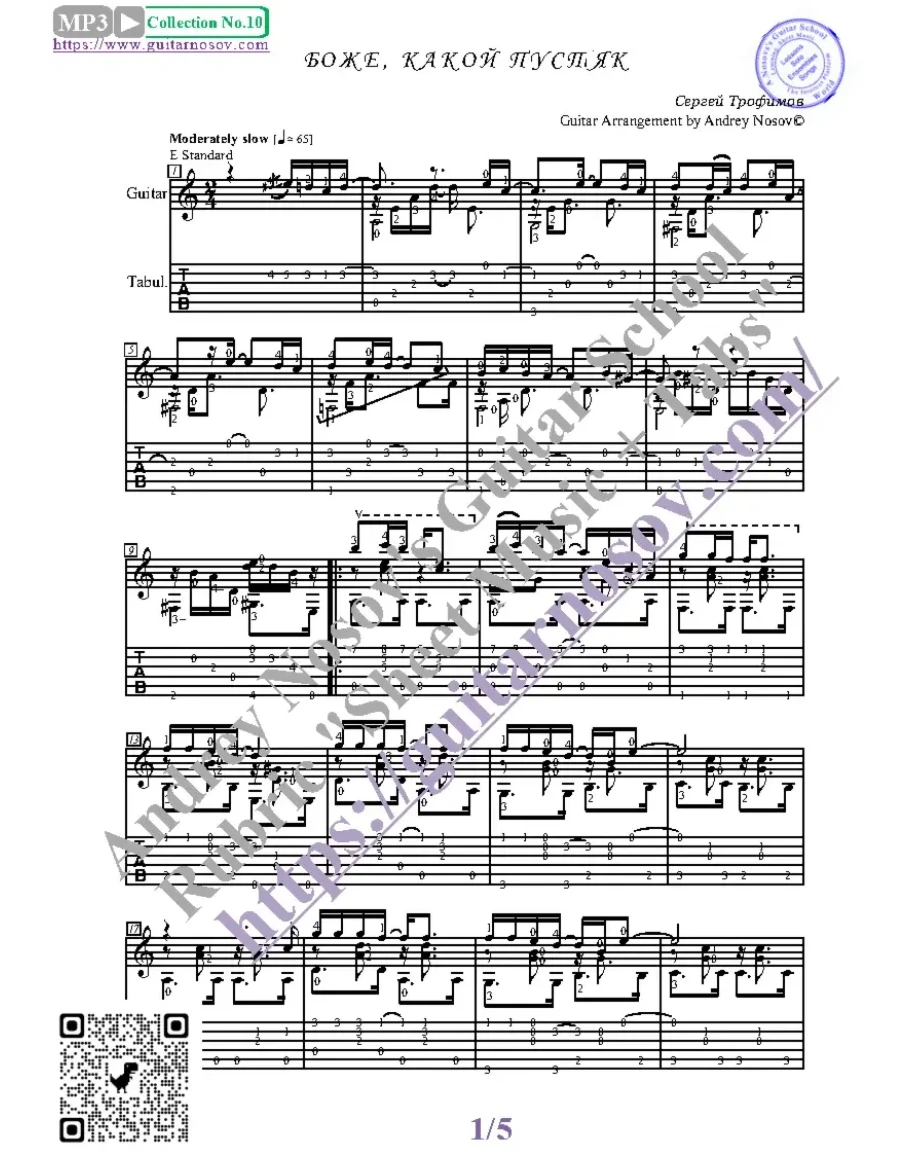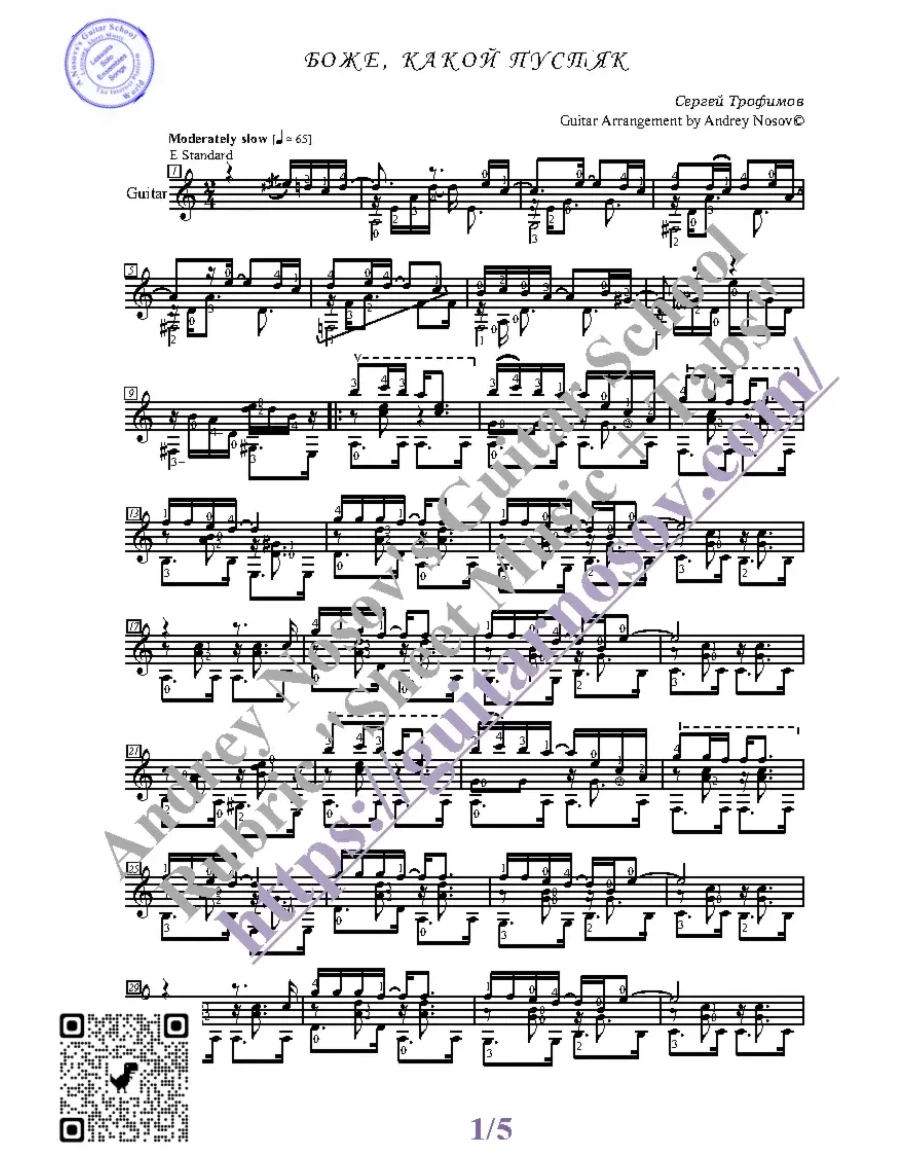 Кликните "Подробнее" для получения дополнительной информации Вашему вниманию предлагается композиция "Боже, какой пустяк (С.Трофимов)", предназначенная для исполнения на 6-ти струнной гитаре СОЛО. Запись выполнена нотами, сопровождена подробнейшей аппликатурой и продублирована табулатурой.