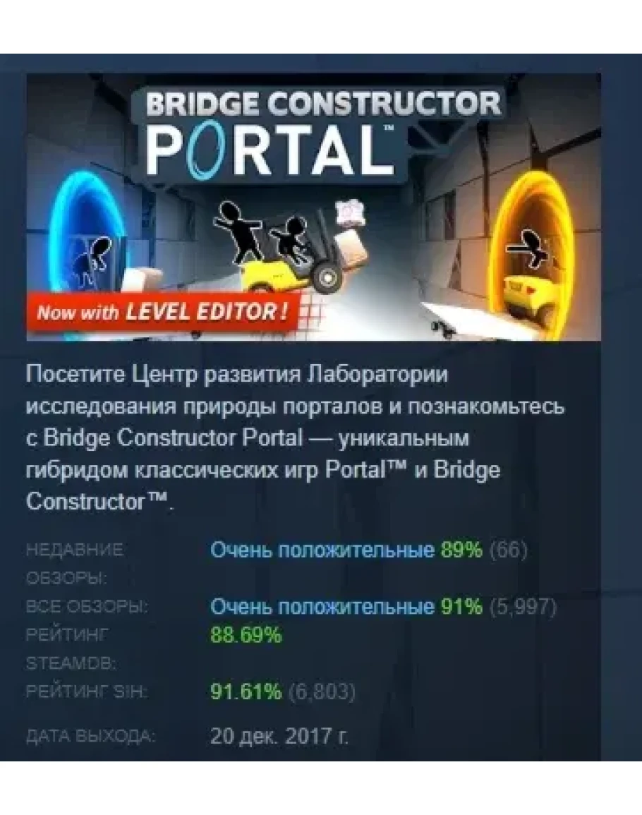 Bridge Constructor Portal АВТОДОСТАВКА STEAM РОССИЯ