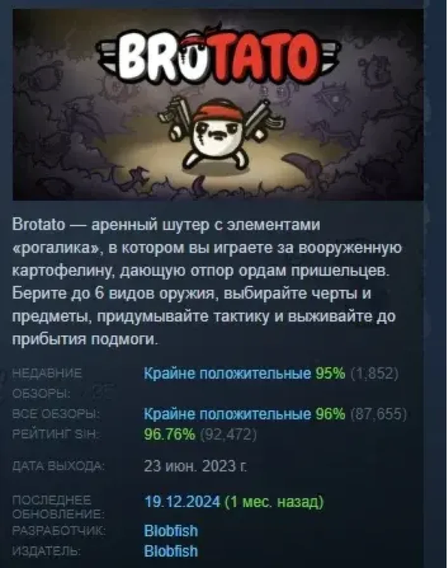 Brotato АВТОДОСТАВКА STEAM РОССИЯ