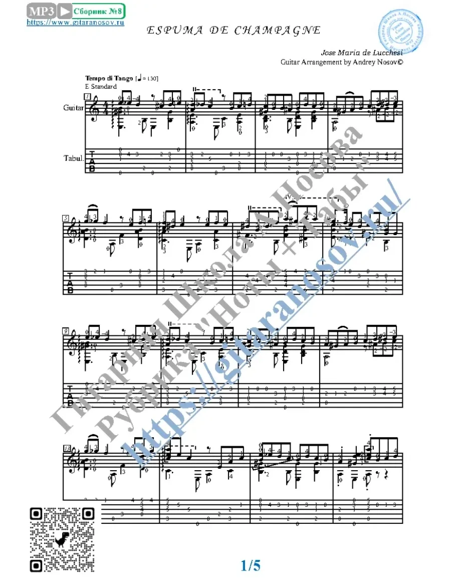 Товар включает в себя ноты с табулатурой и без табулатуры (в одном PDF). Прилагается ссылка на прослушивание / скачивание mp3.