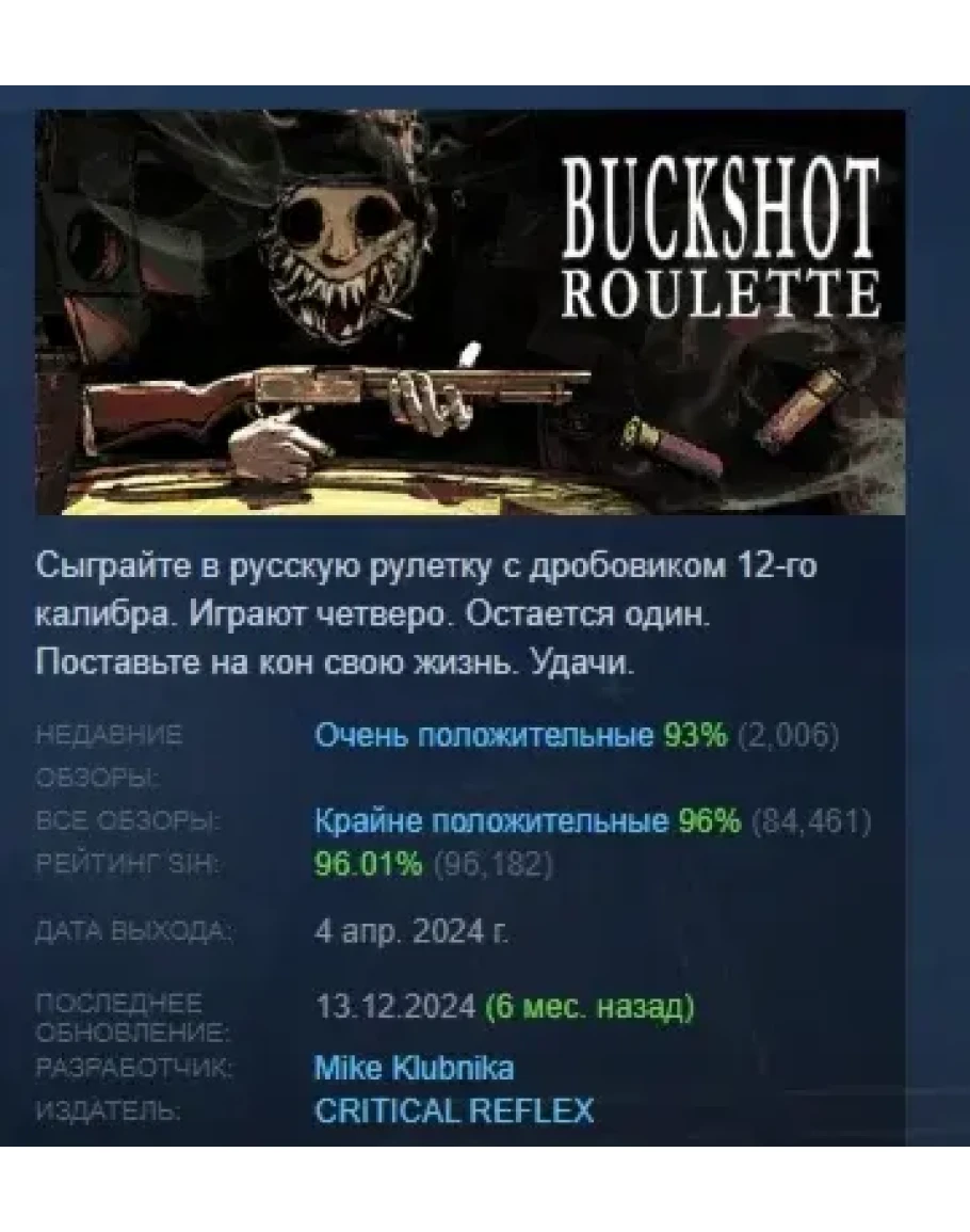 Buckshot Roulette АВТОДОСТАВКА STEAM РОССИЯ