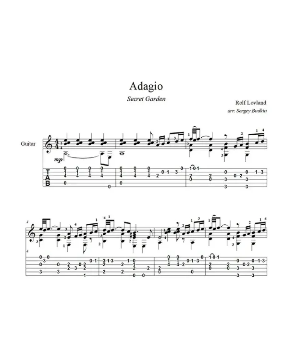 Аранжировка для гитары инструментальной пьесы из альбома "Songs from a Secret Garden" дуэта Secret Garden.