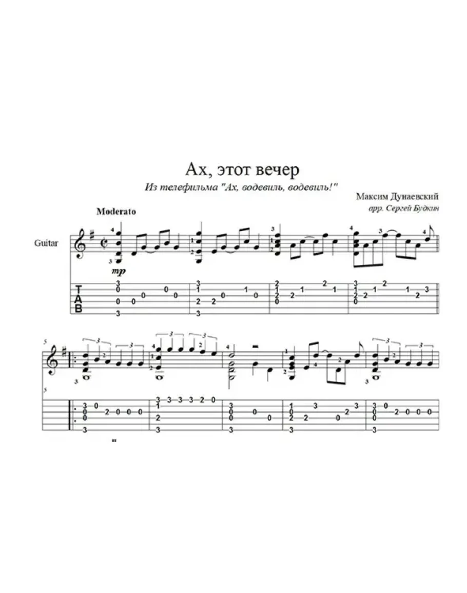 Ах, этот вечер (Максим Дунаевский) для гитары