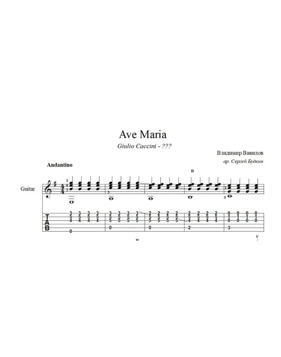 Аранжировка для гитары композиции Владимира Вавилова Ave Maria, которую он выдал за произведение итальянского композитора Джулио Каччини.