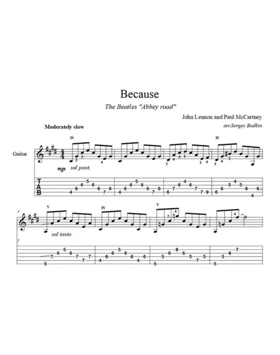 Аранжировка для гитары песни The Beatles из альбома "Abbey Road".