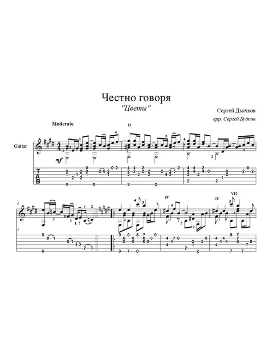 Аранжировка для гитары соло песни Сергея Дьячкова из репертуара группы "Цветы".