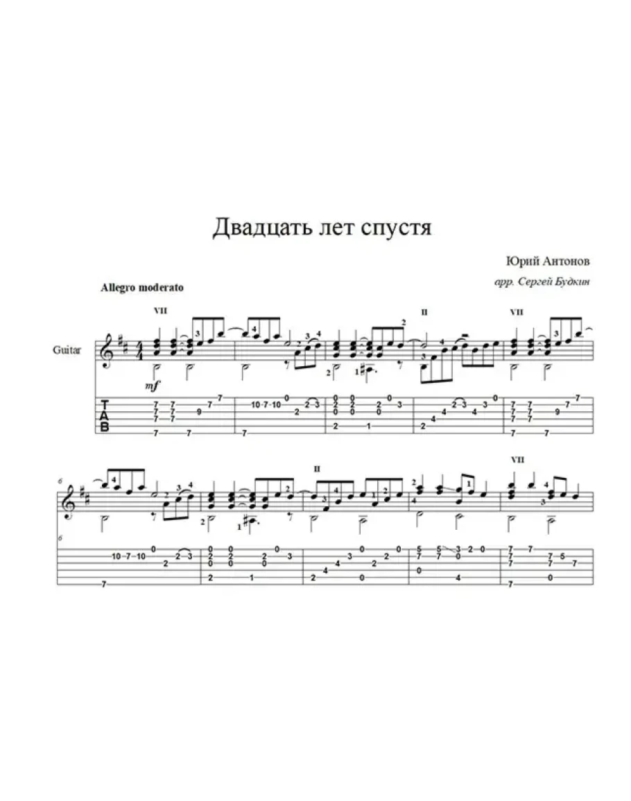 Двадцать лет спустя (Юрий Антонов) ноты для гитары