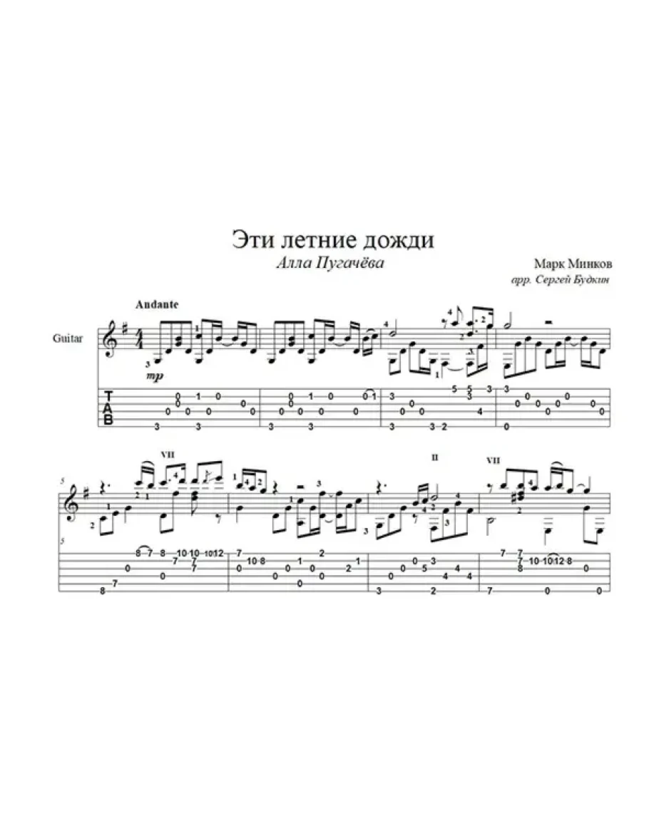 Аранжировка для гитары песни Марка Минкова из репертуара Аллы Пугачёвой.