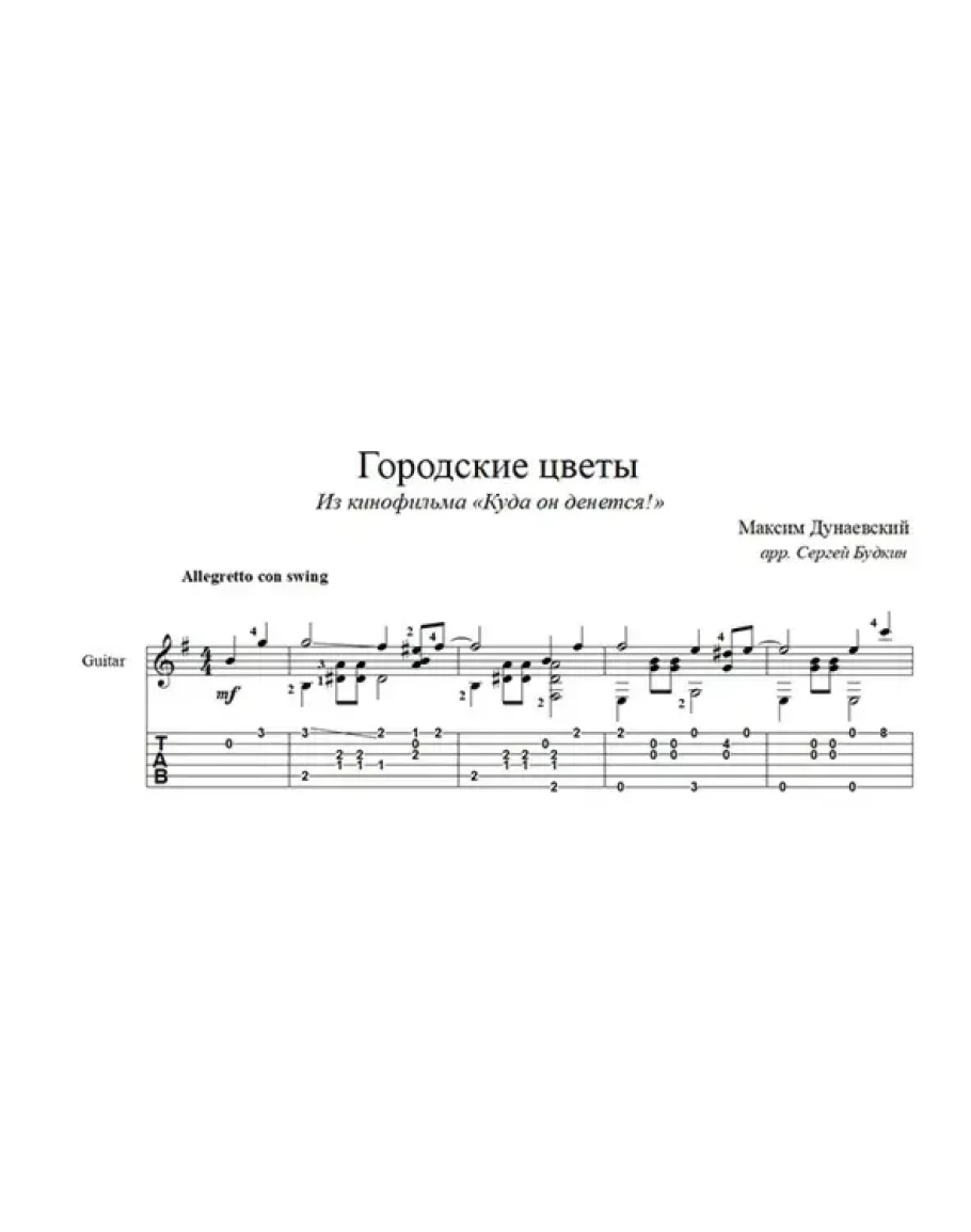 Аранжировка для гитары песни Максима Дунаевского из кинофильма "Куда он денется!", где её исполнил Михаил Боярский.