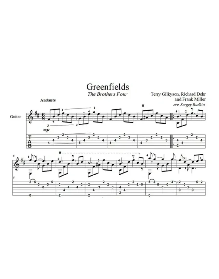 Аранжировка для гитары соло песни "Зелёные поля (Greenfields)", ставшей популярной в 1960 году в исполнении группы "The Brothers Four". В русском варианте - "Город детства" в исполнении Эдиты Пьехи.