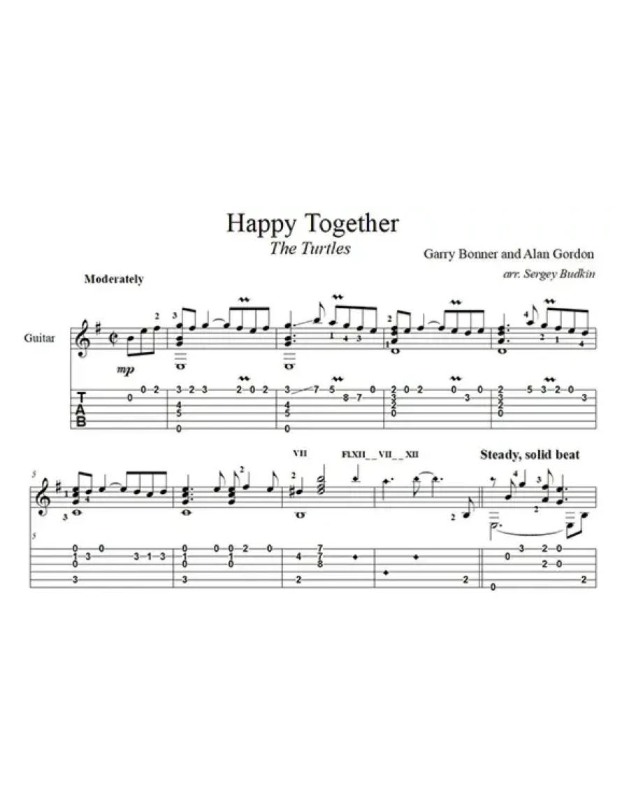 Аранжировка для гитары соло песни Гарри Боннера и Алана Гордона "Счастливы вместе (Happy Together)", хита 1967 года в исполнении группы "The Turtles".