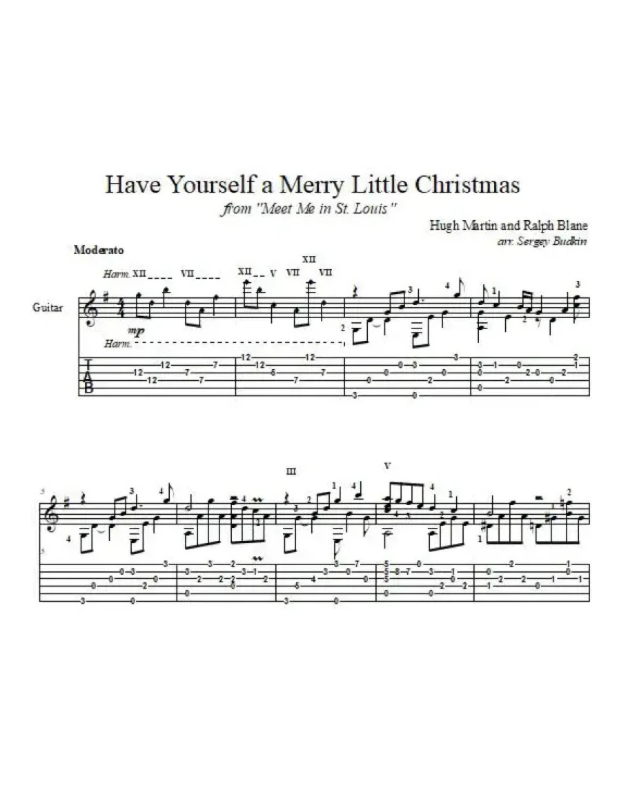 Аранжировка для гитары рождественской песни из кинофильма "Встречай меня в Сент Луисе"