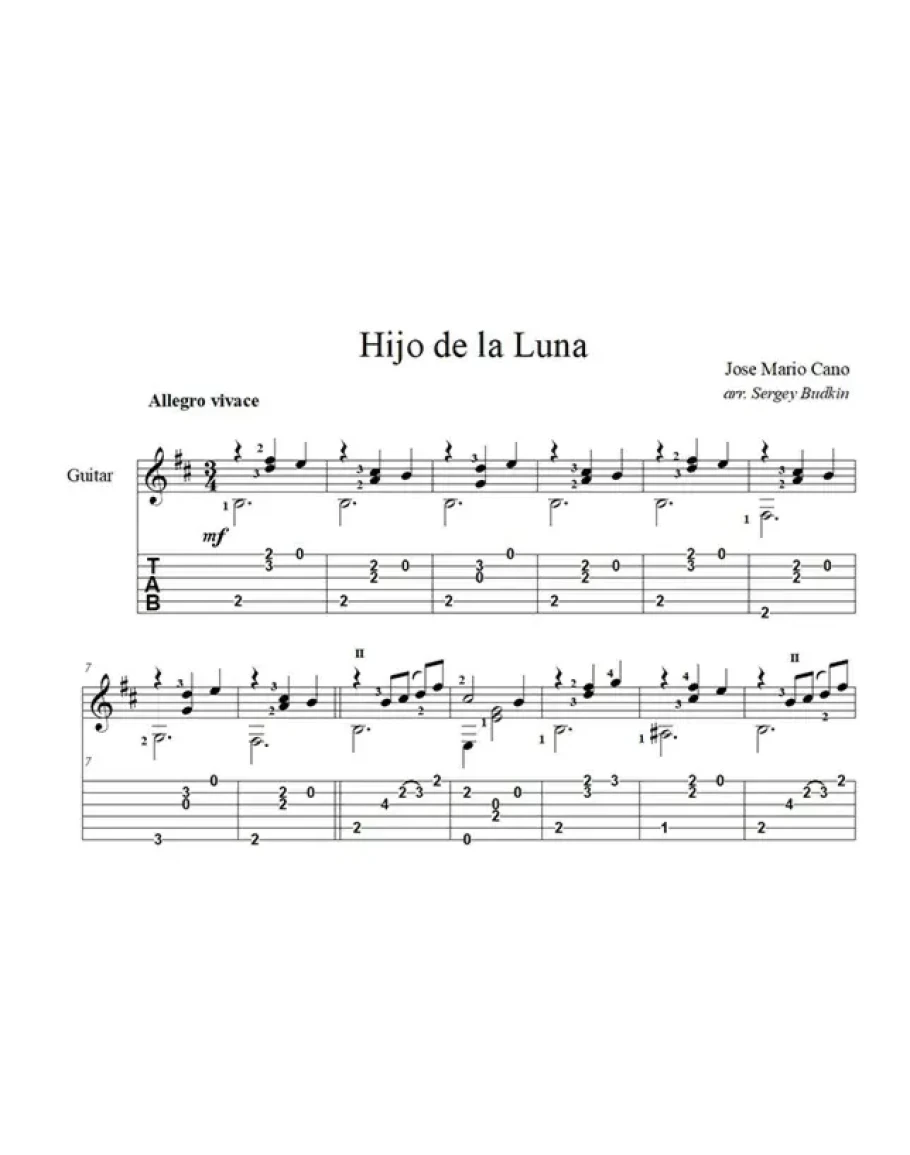 Аранжировка для гитары песни Хосе Марио Кано "Hijo de la Luna".