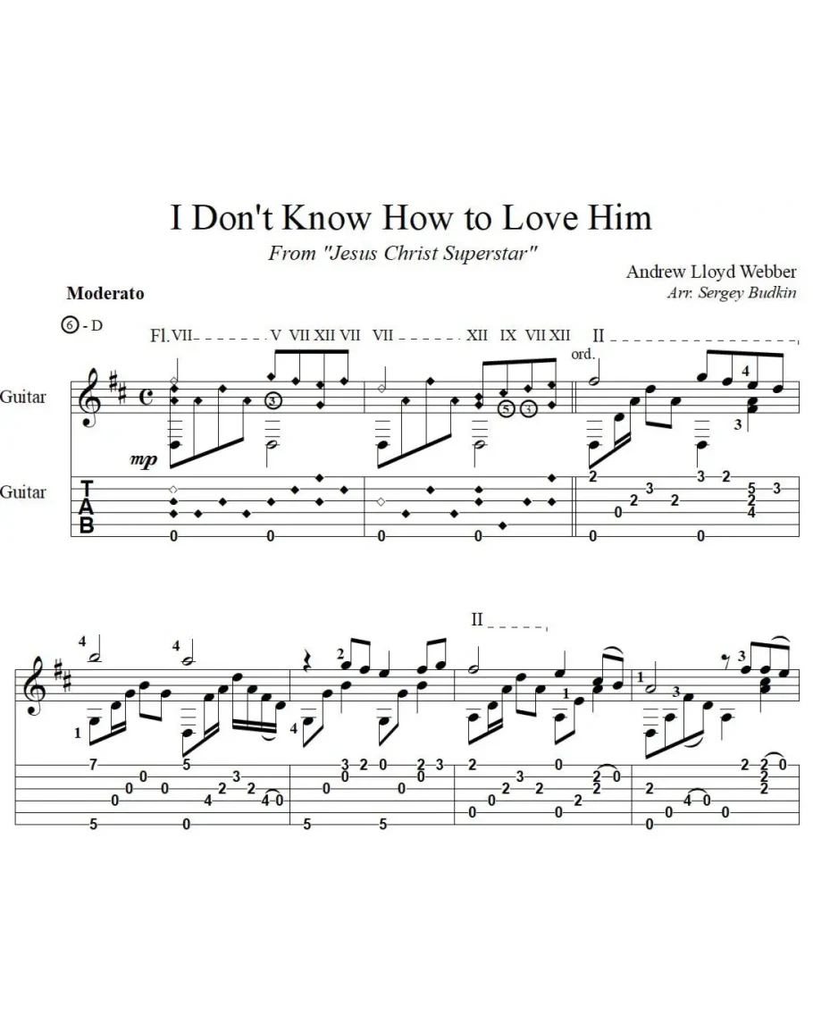 Аранжировка для гитары мелодии Эндрю Ллойд Уэббера из рок-оперы" Иисус Христос - суперзвезда"