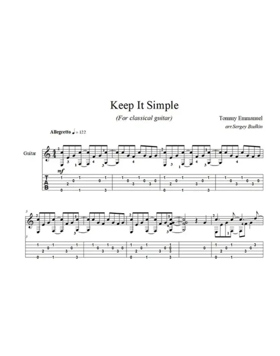 Keep It Simple (Томми Эммануэль)для классической гитары