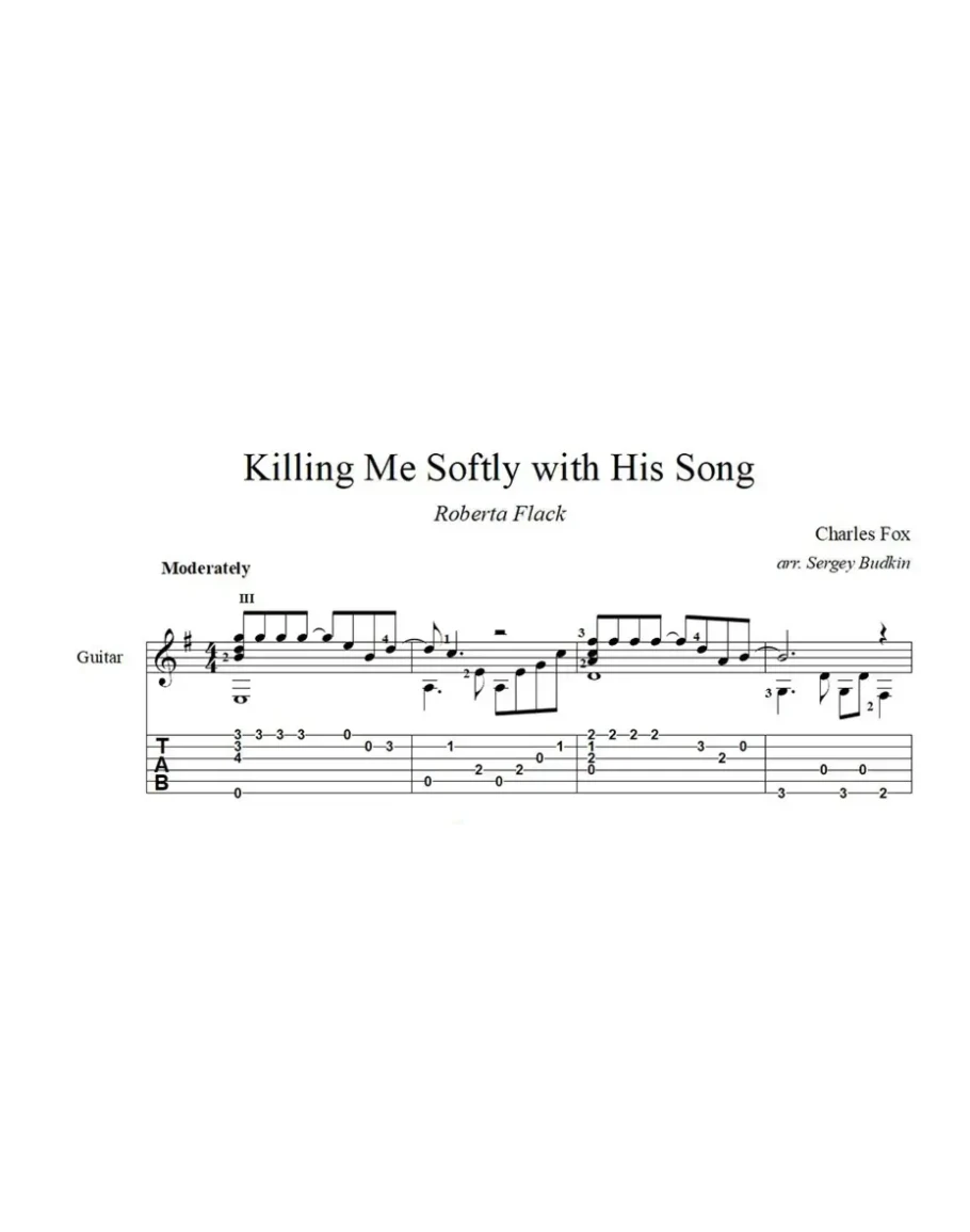 Аранжировка для гитары песни Чарльза Фокса, хита певицы Роберты Флэк.