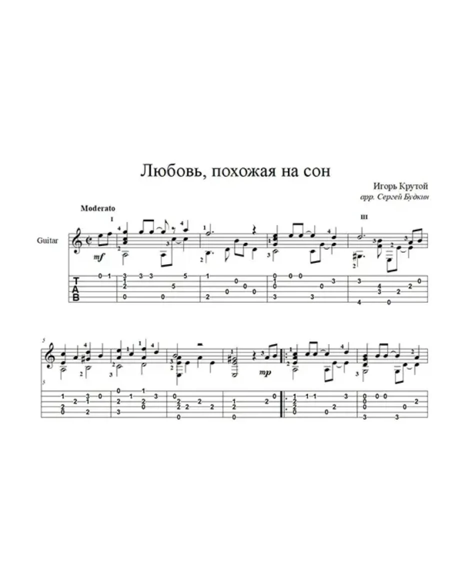 Аранжировка для гитары песни Игоря Крутого "Любовь, похожая на сон"