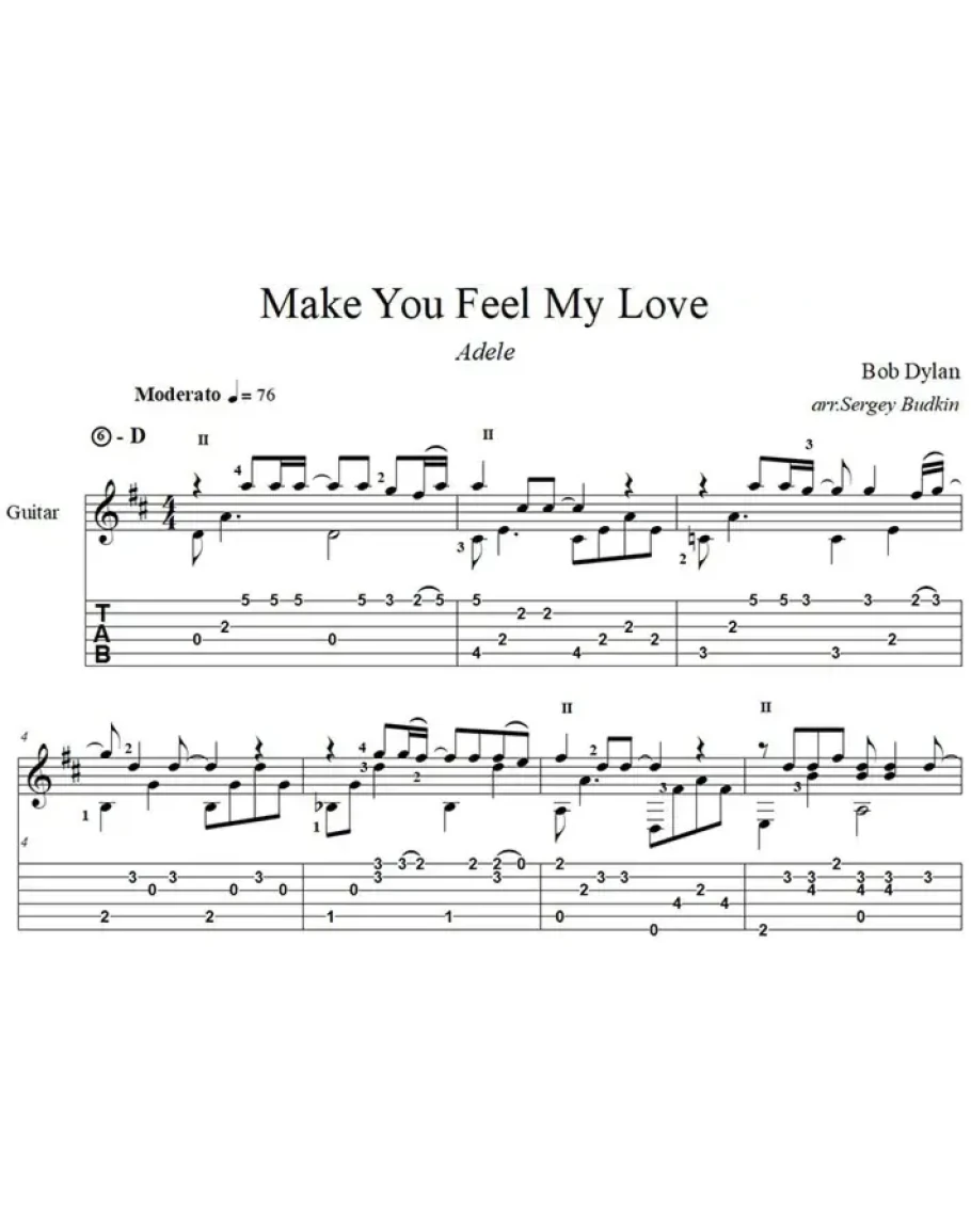 Аранжировка для гитары соло песни Боба Дилана в исполнении Адель.