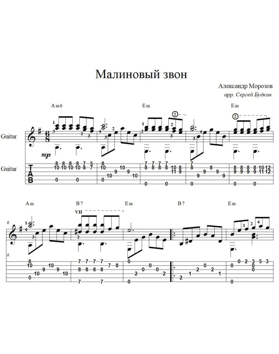 Аранжировка песни Александра Морозова для одной или двух гитар