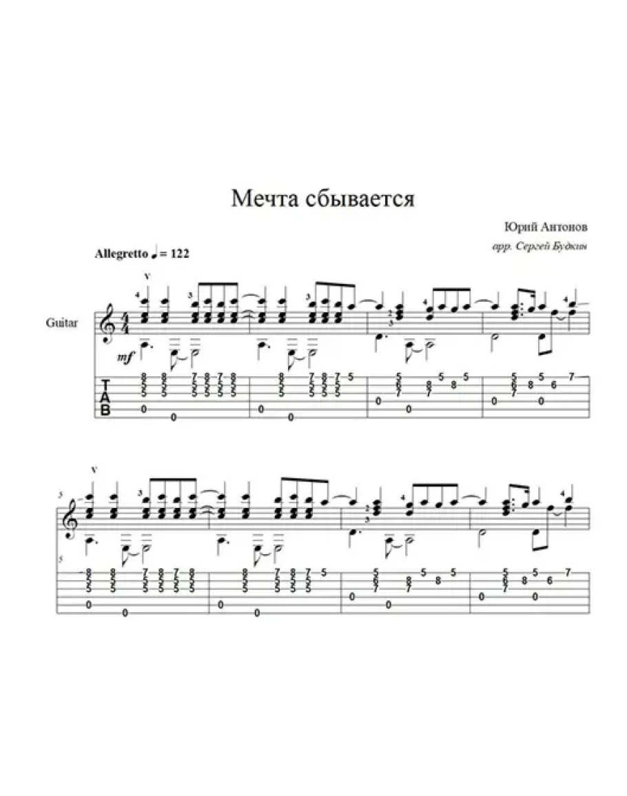 Мечта сбывается (Юрий Антонов) ноты для гитары